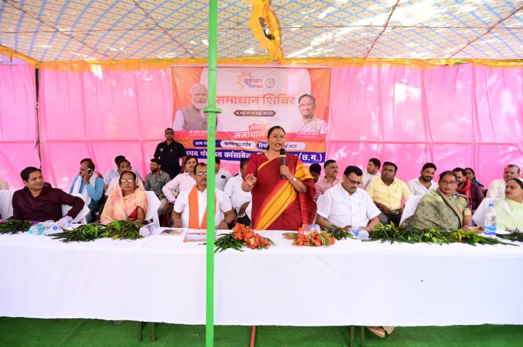 पत्थलगांव – कांसाबेल विकासखंड के ग्राम फरसाजुड़वाइन में आज “सुशासन तिहार” अंतर्गत आयोजित समाधान शिविर कार्यक्रम में क्षेत्रीय विधायक श्रीमती गोमती साय ने गरिमामयी उपस्थिति दर्ज कराते हुए आमजन को सरकार की जनकल्याणकारी योजनाओं की विस्तृत जानकारी दी। यह कार्यक्रम शासन की मंशा के अनुरूप “सेवा, सुशासन और गरीब कल्याण” की भावना से प्रेरित रहा।