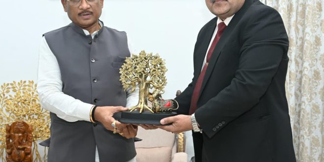 मुख्यमंत्री श्री विष्णु देव साय से आज राजधानी रायपुर स्थित मुख्यमंत्री निवास कार्यालय में इंडियन आयल कार्पोरेशन लिमिटेड (आईओसीएल) छत्तीसगढ़ एवं मध्य प्रदेश के मुख्य महाप्रबंधक (सीजीएम) श्री अजय कुमार श्रीवास्तव ने सौजन्य मुलाकात की। मुलाकात के दौरान राज्य में पेट्रोलियम क्षेत्र के विस्तार, ईंधन आपूर्ति की सुदृढ़ व्यवस्था तथा जनसुविधाओं को और अधिक सुलभ बनाने जैसे विषयों पर चर्चा हुई।
