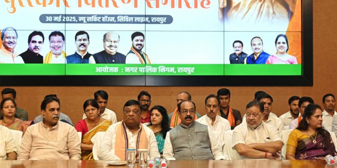 रायपुर नगर निगम द्वारा आयोजित संगोष्ठी और पुरस्कार वितरण समारोह को पूर्व विधानसभा उपाध्यक्ष श्री नारायण चंदेल ने मुख्य वक्ता के रूप में किया संबोधित