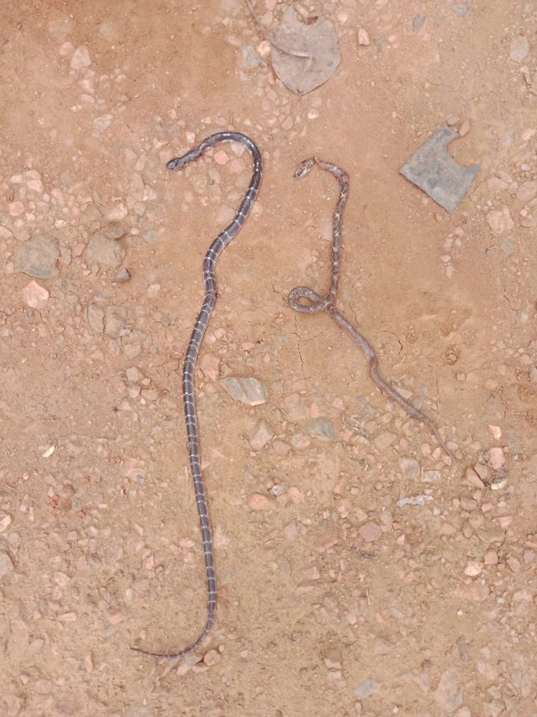 जशपुर।पत्थलगांव के गांव दीवानपुर में एक दिल दहला देने वाली घटना सामने आई है, जिसमें एक ज़हरीले करेंत सांप की दूसरे सांप को खाने की चाहत ने जमीन पर सो रहे एक युवक की जान ले ली। यह हादसा तब हुआ जब एक करेंत सांप ने बिना ज़हर वाले ‘कामन वुल्फ स्नैक’ (सांप) का पीछा करते हुए एक घर में प्रवेश किया। अपनी जान बचाने विषहीन सांप कामन वुल्फ स्नैक वहां ज़मीन पर सो रहे युवक के गर्म बिस्तर के नीचे दुबक गया। जमीन पर सो रहे 40 वर्षीय लोचन राम मांझी के बिस्तर के नीचे दोनों सांप जा पहुंचे। करेंत सांप ने हमला कर दिया और लोचन को डस लिया।जब घरवालों ने उनकी गंभीर हालत देखी तो उन्हें तुरंत अस्पताल ले जाया गया, लेकिन इलाज के दौरान उनकी मौत हो गई। हादसे के बाद जब बिस्तर हटाया गया तो नीचे दोनों सांप मिले, जिससे पूरे मामले का खुलासा हुआ।