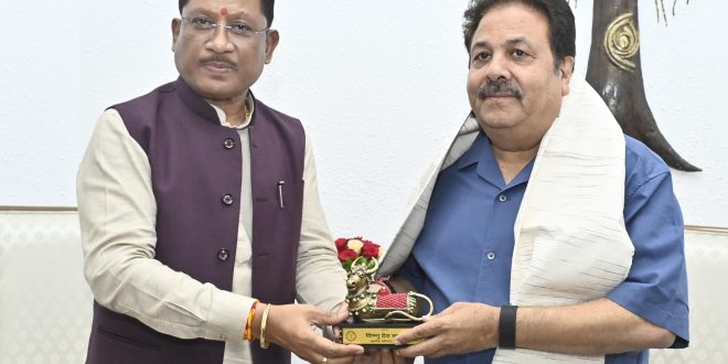 Raipur, 15 June 2025 – Chhattisgarh Chief Minister Shri Vishnu Deo Sai today met with Rajya Sabha MP from Chhattisgarh and Vice President of the Board of Control for Cricket in India (BCCI), Mr. Rajeev Shukla, at the Chief Minister’s residence office.
