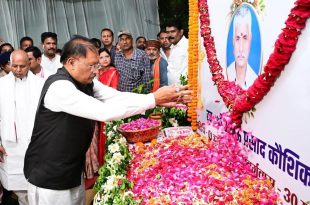 मुख्यमंत्री श्री विष्णु देव साय ने आज बिल्हा विधायक श्री धरमलाल कौशिक के बड़े भाई स्वर्गीय श्री भुलऊ प्रसाद कौशिक को भावभीनी श्रद्धांजलि अर्पित की। उन्होंने बिलासपुर के परसदा स्थित विधायक निवास में आयोजित श्रद्धांजलि सभा में पहुंचकर स्व. श्री भुलऊ प्रसाद कौशिक के छायाचित्र पर पुष्प अर्पित कर उनकी आत्मा की शांति के लिए ईश्वर से प्रार्थना की। मुख्यमंत्री …