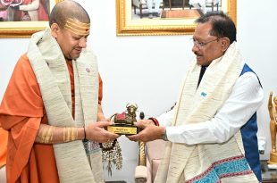 Raipur, 29 June 2025 – Chief Minister Shri Vishnu Deo Sai was paid a courtesy visit today by Niranjani Peethadheeshwar Mahamandaleshwar Dr. Swami Kailashanand Giri Ji Maharaj. During the meeting, Chief Minister Sai held discussions with the revered Acharya Mahamandaleshwar Dr. Swami Kailashanand Giri Ji Maharaj (Shri Shri 1008) on various spiritual topics and received his blessings. On this occasion, …